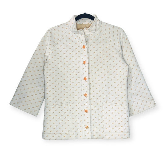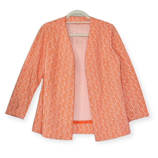 Vintage 70s Orange Jacquard Polyester Wide Leg Pant Suit Set - Size: S/M