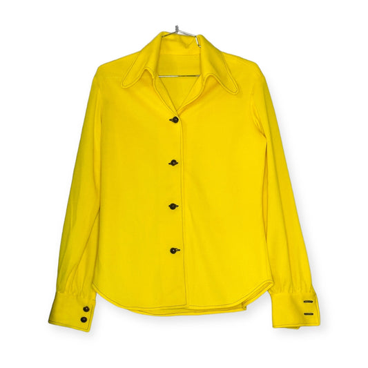 Vintage 70s Electric Yellow 2 piece Polyester Leisure Pant Suit Set - Size: S/M